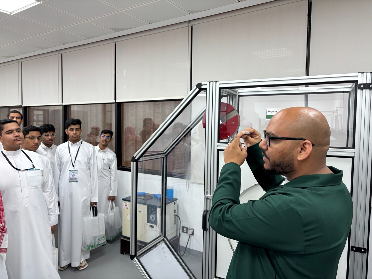 Dhahran, Saudi Arabia — On Monday, October 20, 2025, the Mechanical Engineering Department at King Fahd University of Petroleum & Minerals (KFUPM) welcomed a delegation of 35 students and 2 supervisors from Saqr Al-Jazirah Secondary School, located in Al-Ahsa, Eastern Province. The visit aimed to inspire young minds, introduce them to the field of mechanical engineering, and strengthen ties between secondary and higher education institutions.