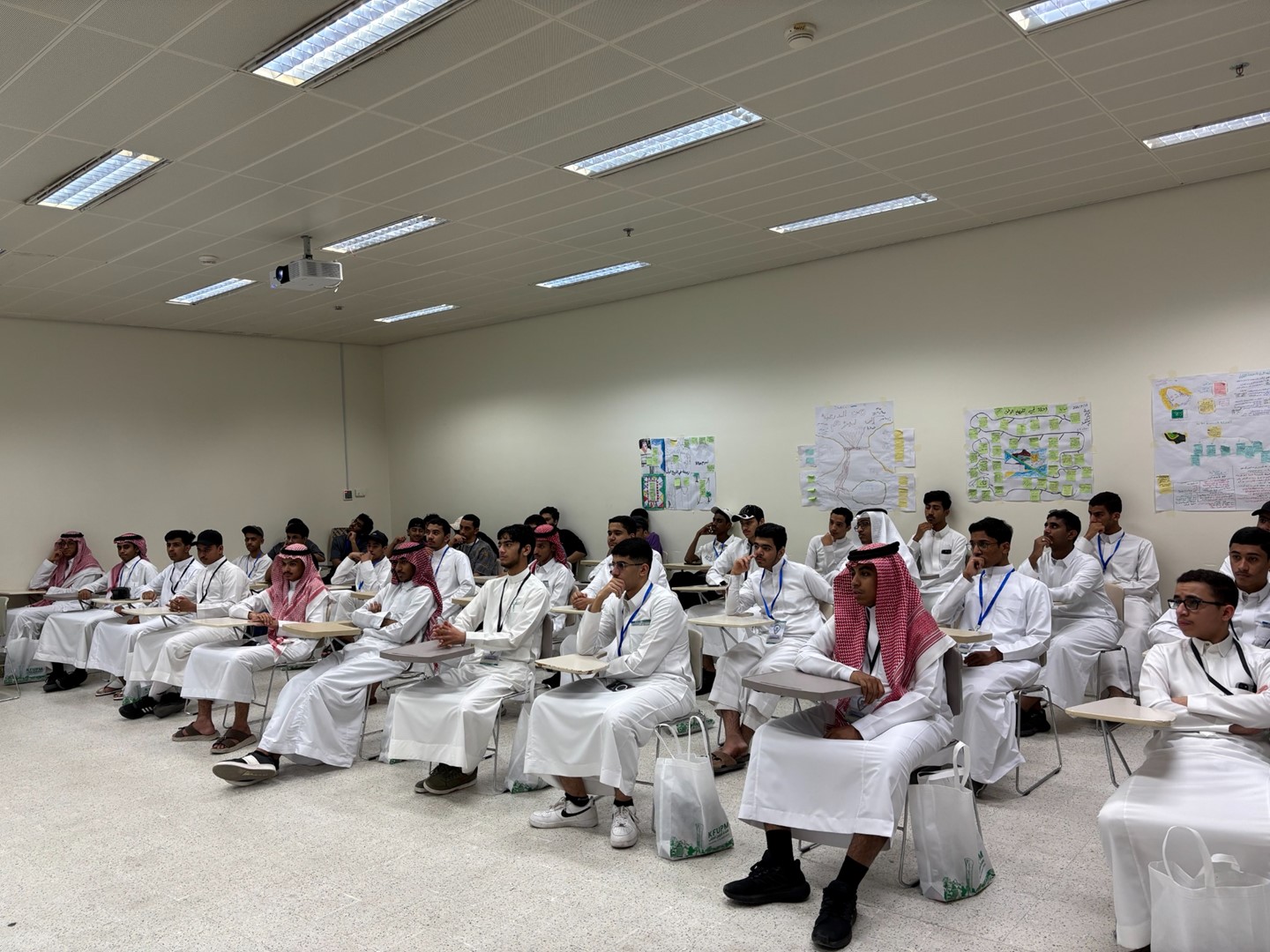 A warm welcome session led by KFUPM representatives introducing Students from Saqr Al-Jazirah Secondary School to the university’s programs
