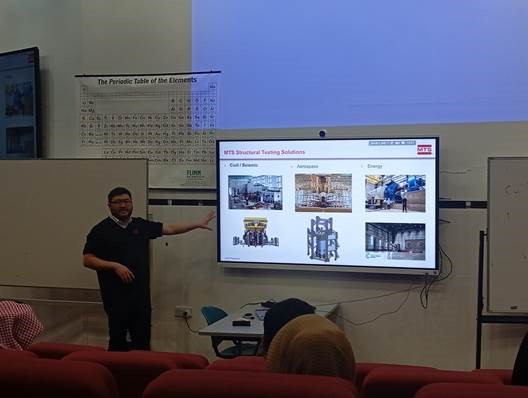 The seminar reflected a strong collaboration between academia and industry. KFUPM’s Department of Mechanical Engineering served as the host, while MTS Systems Corporation provided the technical expertise through Dr. Ting. He oversees business partners and sales activities across several countries, supporting test and simulation solutions for automotive, civil engineering, and research laboratories. The seminar also acknowledged the presence of Integrated Marginal Scientific Supplies, the local partner representing MTS in the region. Together, these stakeholders aim to equip researchers and students with access to reliable, state-of-the-art testing technologies that can validate theories, support publications, and strengthen industrial collaboration.